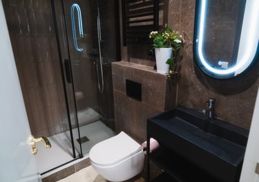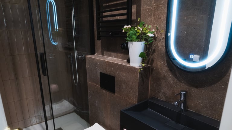 The bathroom features an electric towel warmer, keeping your towels dry and cozy during the winter.