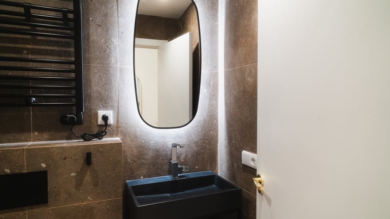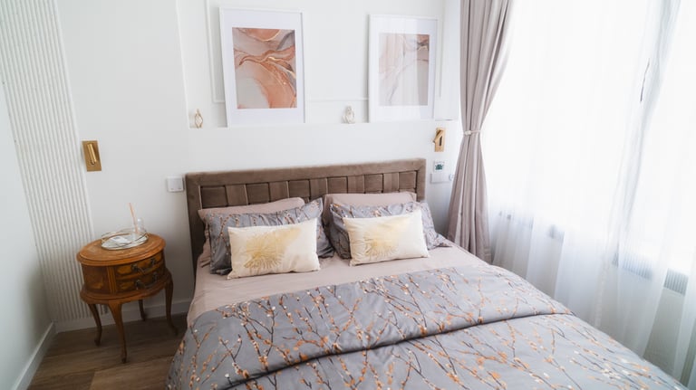 An exclusive apartment with elegant chic design, evoking the glamour of the golden era, blended with a modern and sophisticated touch.