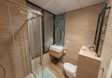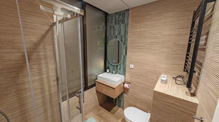 The bathroom has an electric radiator to keep your towels dry and warm after the shower during winter!